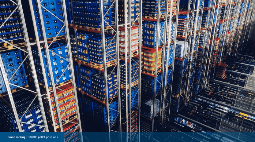 Die Ladeeinheiten werden mit einem automatisch gesteuerten Regalbediengerät aus dem Regalsystem ein- und ausgelagert.